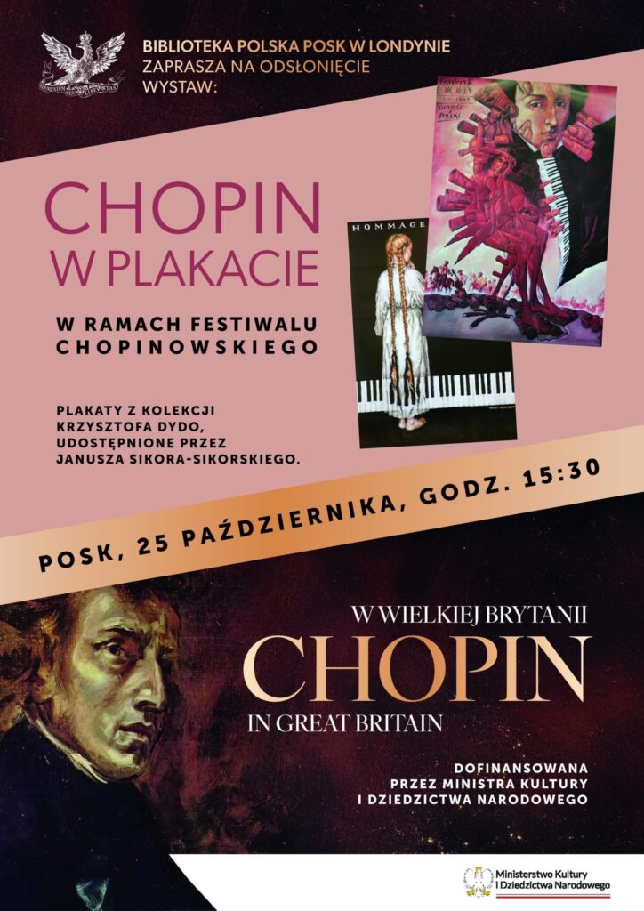 Biblioteka Polska POSK w Londynie zaprasza 25 października o godz. 15:30 na odsłonięcie wystaw: „Chopin w plakacie” oraz „Chopin w Wielkiej Brytanii” w ramach Festiwalu Chopinowskiego.