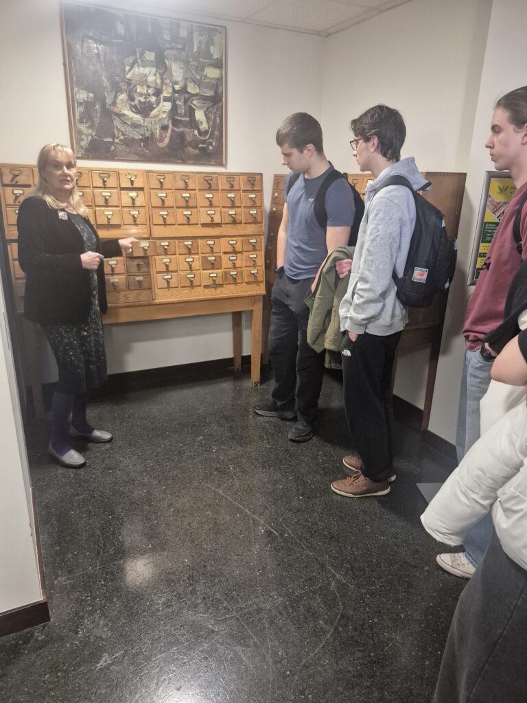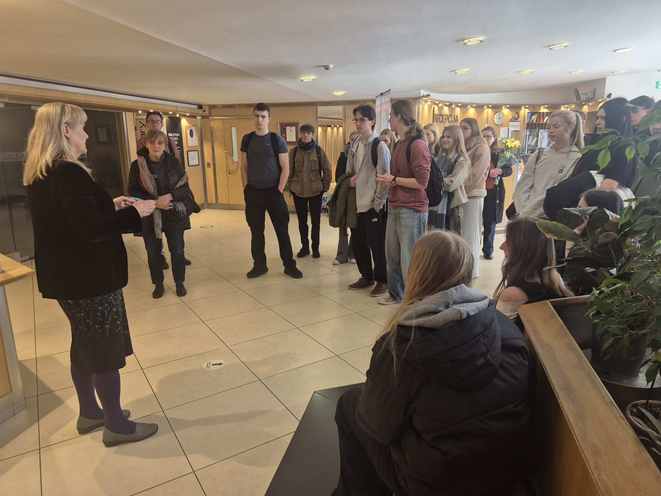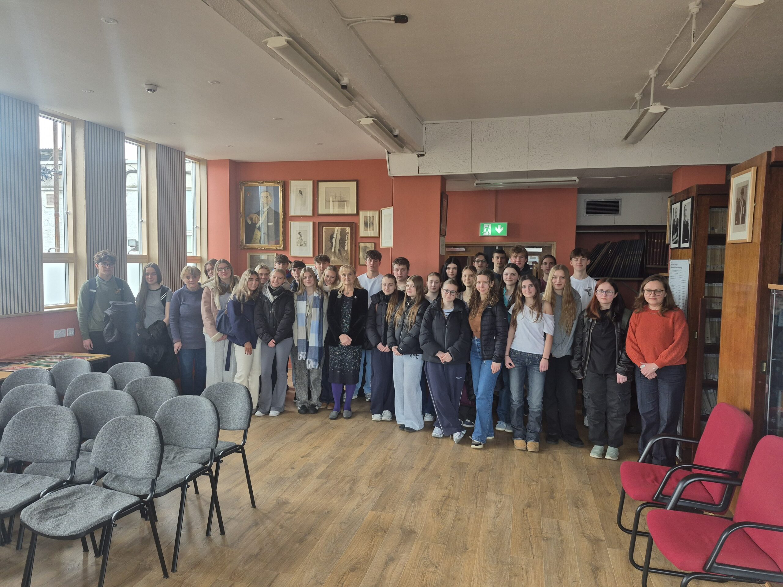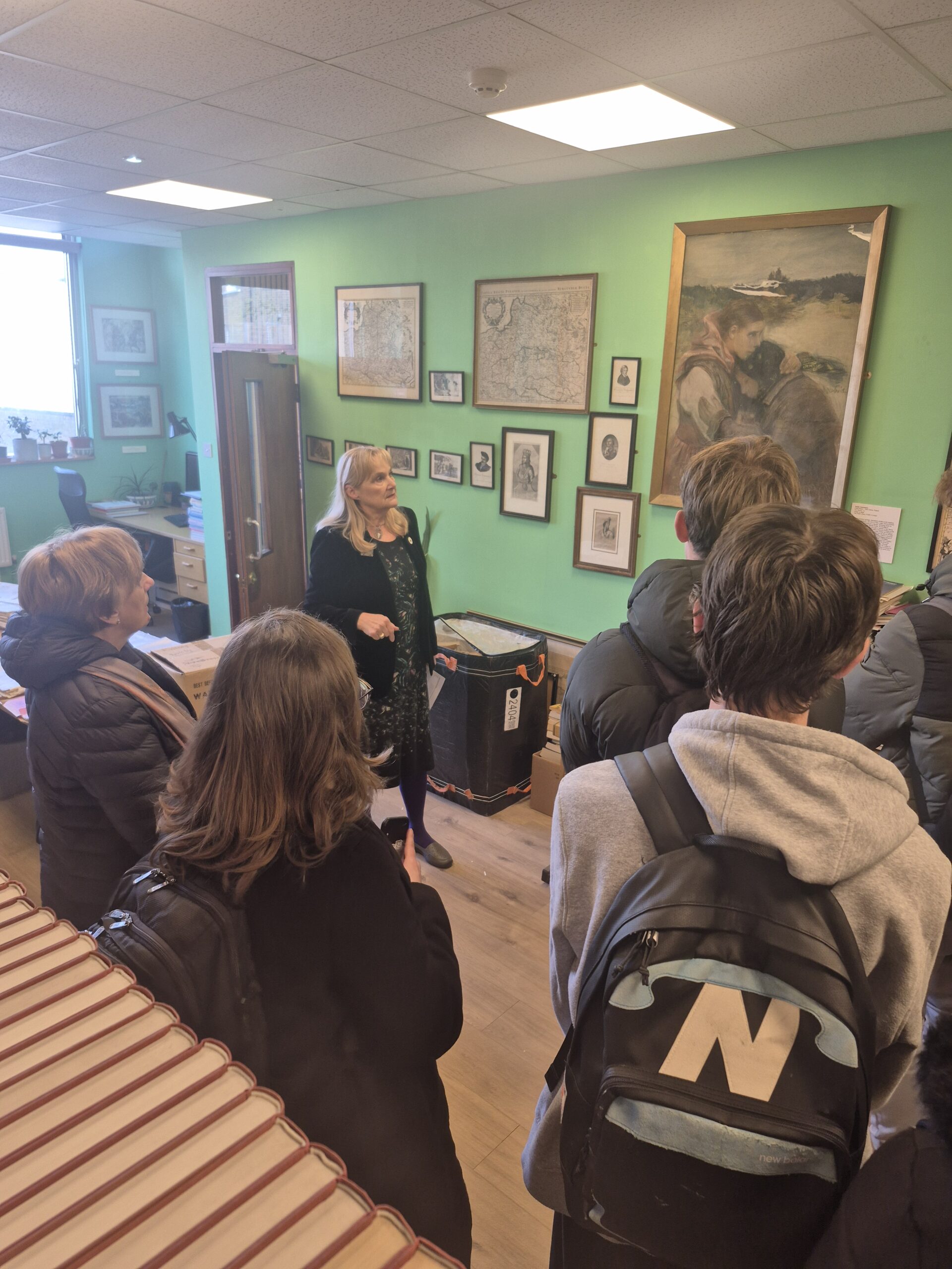 W sobotę, 14 marca 2026 Bibliotekę odwiedziła młodzież uczęszczająca do Szkoły Przedmiotów Ojczystych im. Marii Skłodowskiej-Curie, Wimbledon w Londynie. Lekcję poprowadziła dyrektor Biblioteki, dr Dobrosława Platt witając uczniów i nauczycieli w holu Polskiego Ośrodka Społęczno-Kulturalnego, w którym znajduje się Biblioteka. Młodzież poznała historię tego miejsca oraz miała okazję odwiedzić wyremontowaną właśnie i oddaną do użytku Czytelnię. Uczniowie byli niezwykle zainteresowani prezentacją pt. „Komunizm w Polsce i opór przeciw niemu”, który był głównym tematem lekcji bibliotecznej.