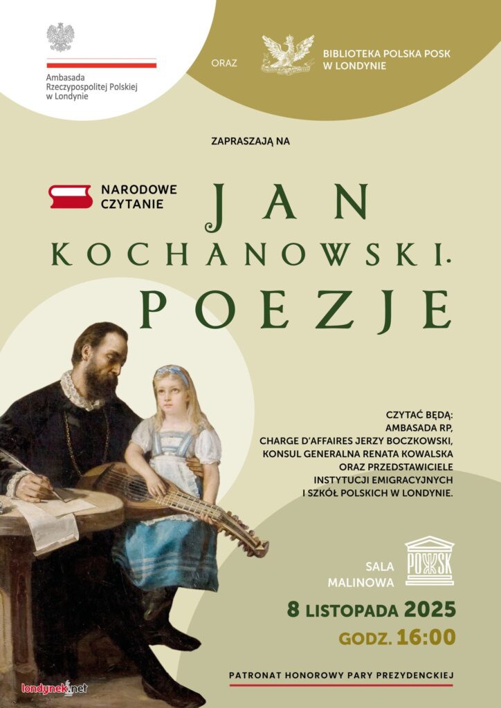 Ambasada RP w Londynie oraz Biblioteka Polska POSK zapraszają na Narodowe Czytanie, które odbędzie się w sobotę, 8 listopada o godz. 16.00.